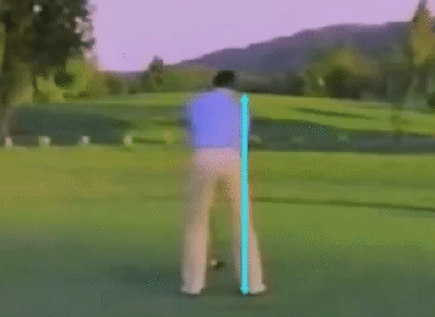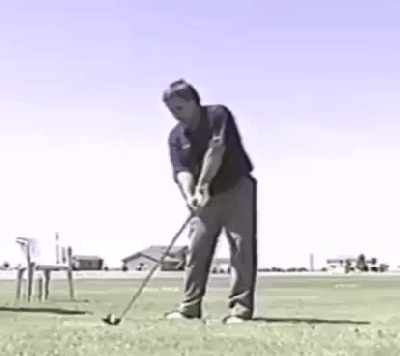 That is an old gif., and my critique here would be, “too high a leading heel through impact, too much rotation and not enough drop.”