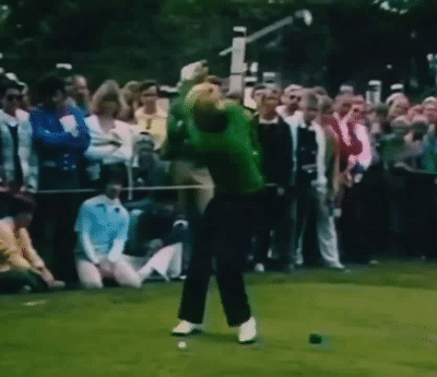 First, Nicklaus loaded the trebuchet with the floating pivot backswing (watch how absolutely still that head is on the pivot move to the top, and that little head move when he gets to the top is the product of an imperfect setup, ever so slightly):