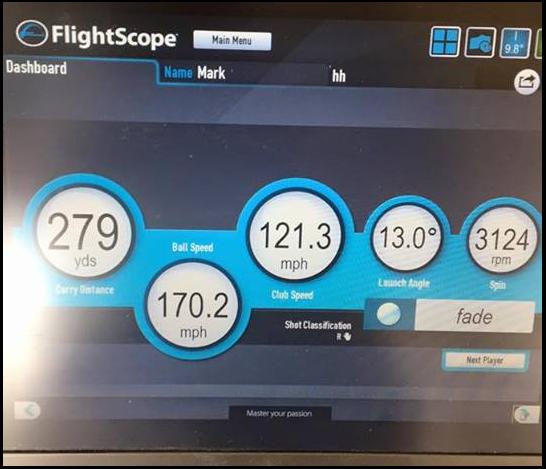 The name on the plate says “Mark” but it was likely a student he’d been working with, and that swing was a record for BT in December of 2015 just before I flew down for his qualifier (and he actually hit 124 later in 2016, believe it or not).