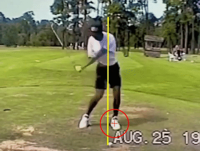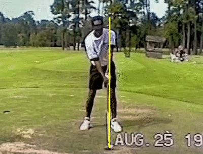 - TW’s method of making sure his left shoulder is “behind the ball” is to make a lean to his right as he takes the club back and,