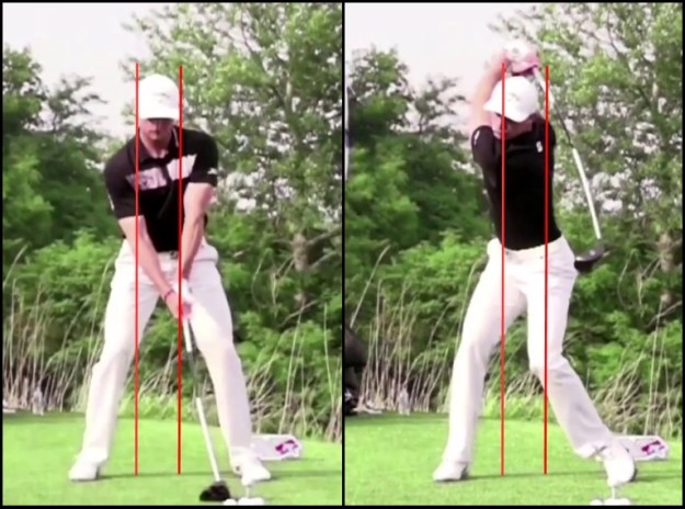 Step 3 – Don’t shift your weight fully to the leading foot on the down swing.