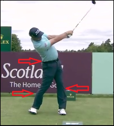 If you follow me here, first of all the analyst here has no clue what Padraig is doing to get this distance, all he mentions is an extended right arm (observation), starting the downswing with the lower body (how else on earth would you start it) and how he comes up post-impact (more observation), and none of these things are relevant: