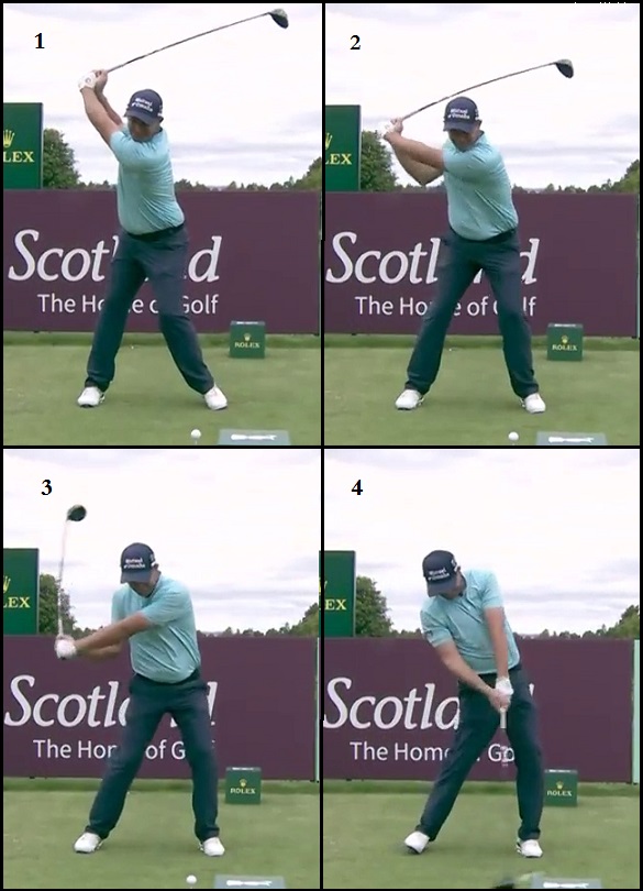 If you follow me here, first of all the analyst here has no clue what Padraig is doing to get this distance, all he mentions is an extended right arm (observation), starting the downswing with the lower body (how else on earth would you start it) and how he comes up post-impact (more observation), and none of these things are relevant: