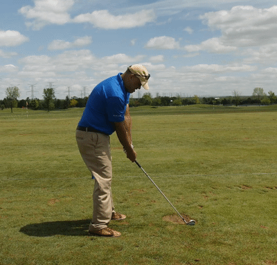I was aiming at the white flag that you can see directly in front of me, and notice how quickly one can set up to make a swing when you just focus on the proper setup.