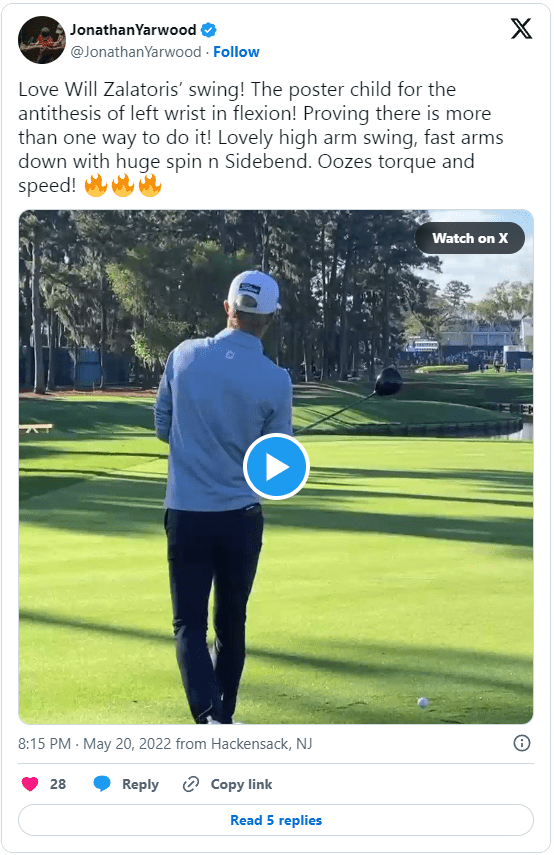 Looking at Gordon Sargent’s golf swing action, which is what the video is actually about, I’m only reminded of Will Zalatoris and how everyone loved his swing, until they didn’t after it broke his back and he had to re-tool in order to continue playing golf for a living: