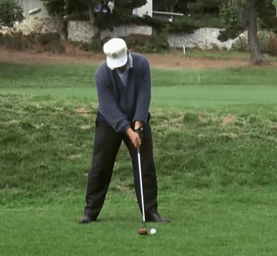 The head motion comes from the too-wide stance, which kept this particular setup and swing action from being just about perfect or optimal, but he never lost his lateral position due to swinging in the Classic Golf Swing style.