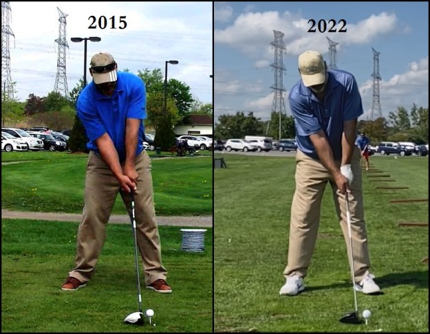 Anyway, here is a comparison of my best ever setup in ’15 and what I was doing in ’22 before I took my swing research indoors and spent the next two winters studying and working on a right-dominant swing action: