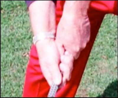 - So, a ten-fingered grip is where I used very thick grips to hold the club in my palms with the leading hand thumb going down the shaft and my right hand over it.