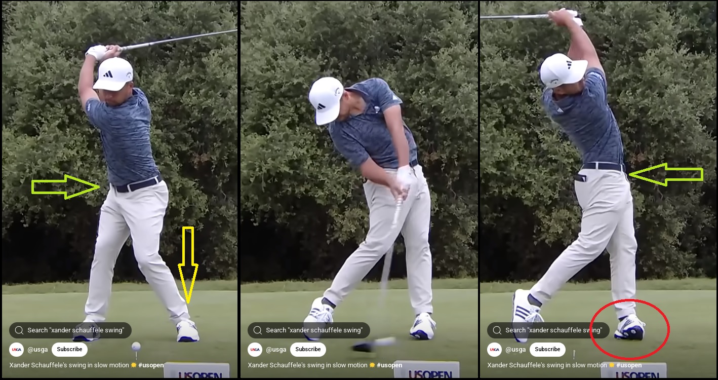 As I said, a pretty good swing, very powerful – but it’s a Modern Golf Swing action, meaning Xander is keeping his leading heel firmly planted on the back swing pivot, and that brings us to the USGA’s myth.