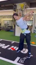 Have a look where the red arrow is pointing – this swinger is anchoring her trailing foot deliberately so that she can snap that leading foot and leg back using this training device.