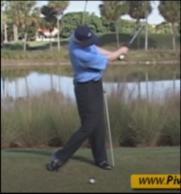 … there is a slight move in the transition that looks like Hogan is making a lateral shift, but it’s merely the returning of the weight to the leading foot will naturally move your weight and the hips toward the target: