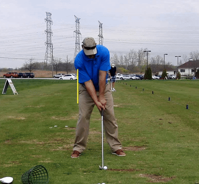 If you set up over the right side as you should be doing, you will have no shift whatsoever in any direction, and I’ll deliberately show you a 4 iron swing from 2015 when I was hitting balls at a 225-240 yard green – that is typically the distance at my range to the far green: