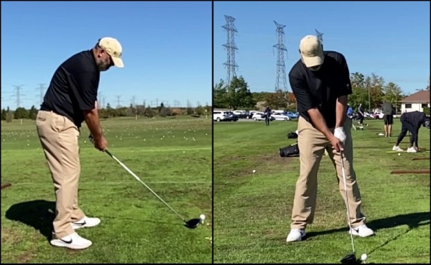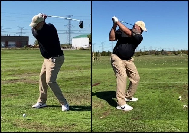 Now, I know that it’s my model and I know it inside out (and I always used to swing my swing aid even in the off-season to stay limber), but this is my driver swing after 8 months off hitting balls back in the pandemic times. Last time out, September ’20 and this was June 15, ’21 between lockdowns: