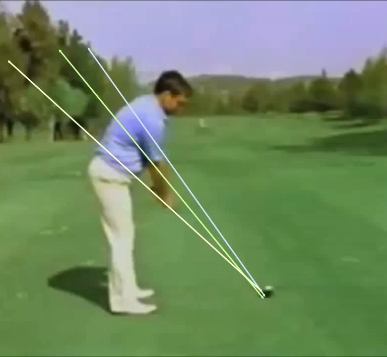 That top line is the plane of Dunaway’s leading arm at the top – doing anything like hiking his hands to take his arm above that line, and or collapsing his wrists to get the club head farther from the ball, wouldn’t have increased his impact speed.