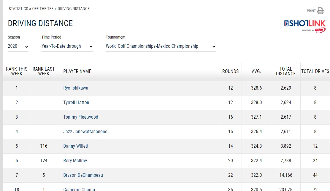 shotlink 2020 driving